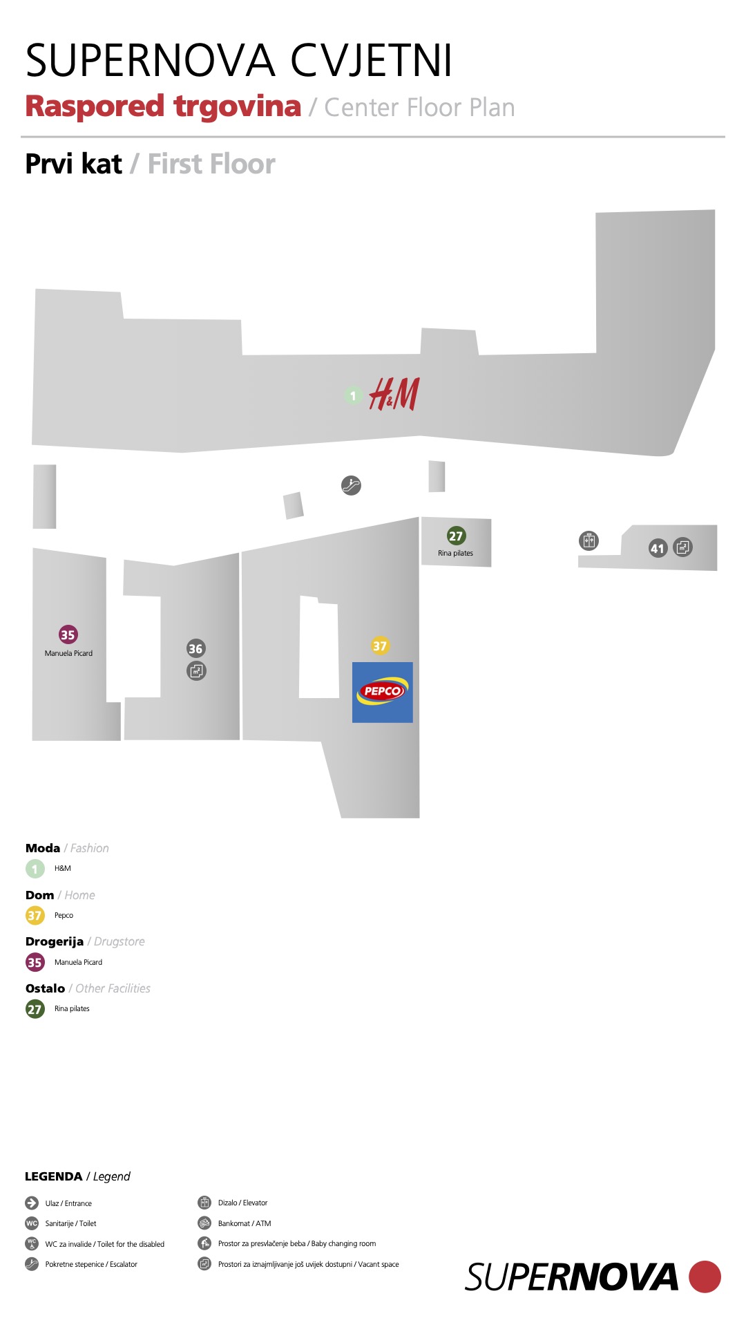 Here you’ll find the center map of Supernova Cvjetni. Simply click to discover our shops and services!